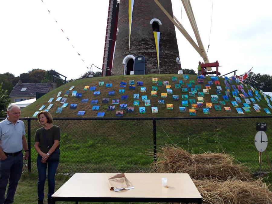 Het weer werkte geweldig mee en na de opening, ’s morgens om 10.00 uur door wethouder Laura Matthijssen, kwamen er al direct veel kijkers. Ook ’s middags wat het druk en gezellig in en rond de molen en de tenten op het Molenerf. Zowel de kunstenaars als de organisatie ontvingen veel complimenten.
