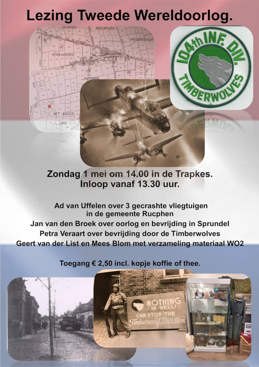 Ad van Uffelen vertelt er over drie gecrashte vliegtuigen in de gemeente Rucphen, Jan van den Broek over oorlog en bevrijding in Sprundel en Petra Veraart over de bevrijding door de Timberwolves.