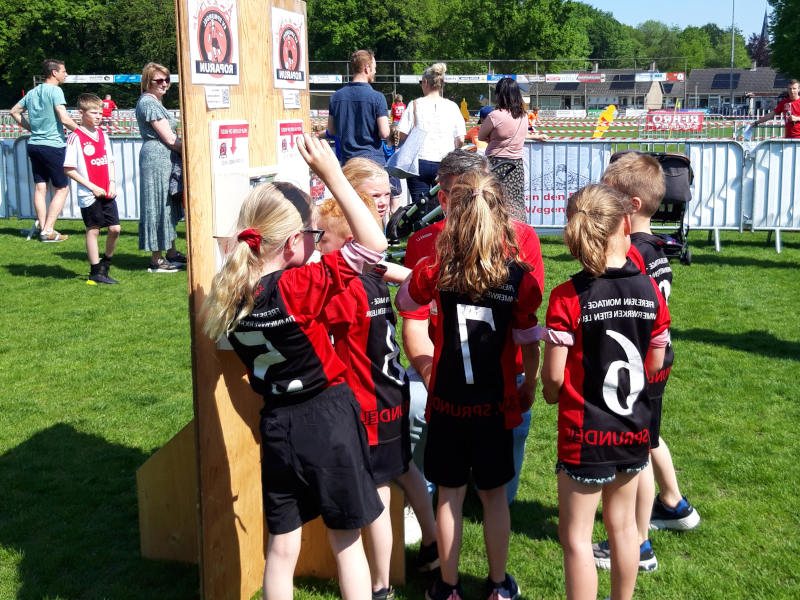 Aangemoedigd door ouders en opa’s en oma’s legden zaterdag 15 teams, bestaande uit vier tot zes kinderen van vier tot twaalf jaar, in estafettevorm 20