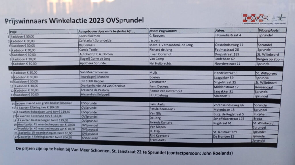 Deze gelukkigen kunnen hun prijs ophalen bij Van Meer Schoenen, St Janstraat 22 te Sprundel.